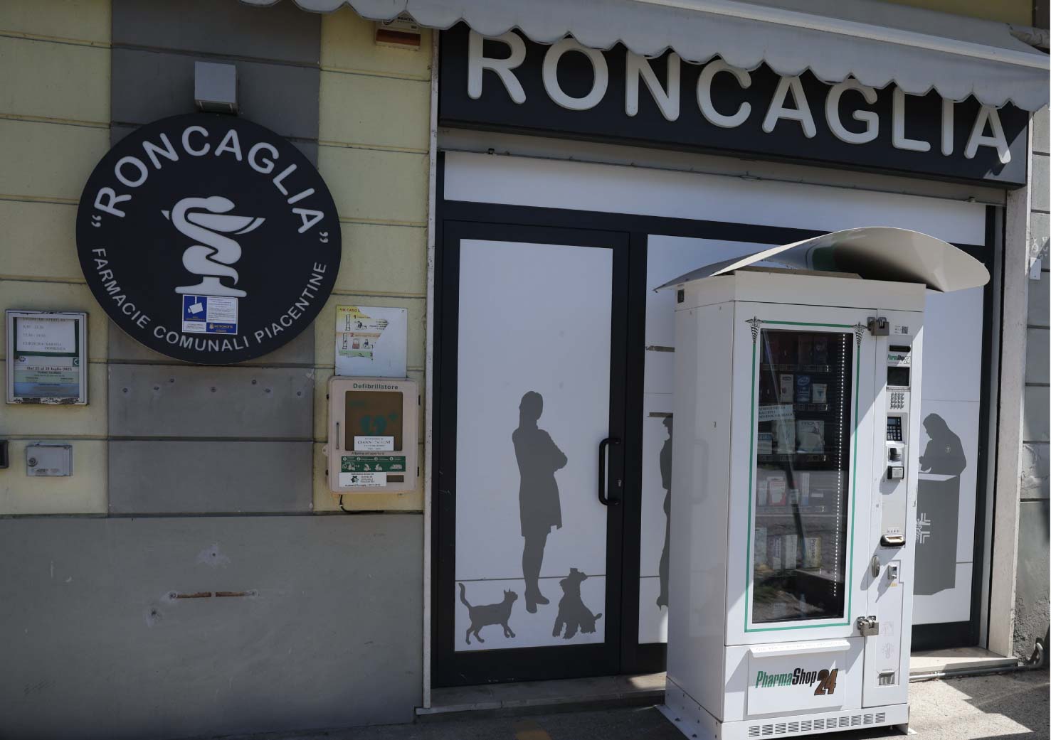 La farmacia nasce ufficialmente il 17 Luglio 1970 come quarta farmacia in ordine cronologico gestita dal Comune di Piacenza. A seguito della soppressione della numerazione diventa Farmacia “Roncaglia” per identificarne la localizzazione. È l’unica delle tre, infatti, ad essere ubicata all’esterno della cintura urbana, precisamente nella frazione di Roncaglia, a circa 8 km dal centro città, in direzione est lungo la Strada Caorsana o Strada Provinciale n.10, che congiunge Piacenza a Cremona.